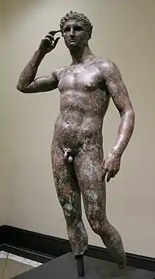 تمدنهای بزرگ دنیای قدیم از زمان معرفی آلیاژ برنز، آن را برای مقاصد هنری و تولید ابزار و اسلحه به کار میبردند. دختر رقصنده از موهجودارو، متعلق به تمدن هاراپان است و قدمت آن به ۲۵۰۰ سال پیش از میلاد برمی گردد. این مجسمه شاید قدیمیترین مجسمه برنز شناخته شده باشد.[5] یونانیان اولین نفری بودند که ارقام را تا اندازه عمر ارزیابی کردند. تعداد کمی از نمونهها شرایط خوبی دارند. یکی از آنها مجسمه جوانان پیروز برنز ضدزنگ است که برای اینکه این همه سال سالم بماند تلاشهای زیادی صورت گرفتهاست. از عصر حکومت رومیان مجسمههای برنز بسیار بیشتری باقی ماندهاست.