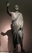 متصدی ، ۱۰۰ سال قبل از میلاد ، مجسمه برنزی ایتروسکو-رومی که آول متل را به تصویر میکشد (لاتین: Aulus Metellus) ، مردی اتروسیایی که در حالی که مشغول بلاغت بود ، یک توگا رومی پوشید . این مجسمه دارای کتیبه ای به الفبای اتروسک است