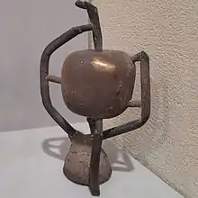 مجسمه سیب،پس از خارج شدن از قالب. قیفی که برنز از طریق آن ریخته شدهاست (وارونه) در زیر است. این آخرین مرحله از فرایند ریخته گری لاست وست است
