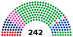 این مجلس در حال حاضر دارای ۲۴۲ کرسی است که ۹۶ نفر از اعضای آن نمایندگان کل کشور هستند و باقی از ۴۷ حوزه انتخابیه به عنوان نمایندگان محلی انتخاب میشوند.[1]