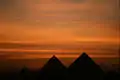 نمایی از مجموعه اهرام جیزه در غروب آفتاب.
