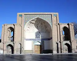 سر در تشکیل شدهاست ار قوسی پنج او هفت و هشتی بسیار زیبا همراه با تزیینات -که اکثراً تخریب شدهاند- و گنبدی که بر روی هشتی قرار گرفتهاست.