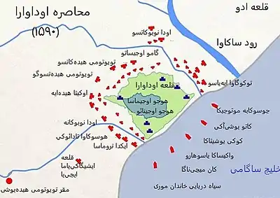 | نیروهای تویوتومی هیدهیوشی | نیروهای خاندان هوجو | ||||||