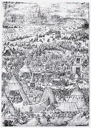 ![]() نگارهای محصول سال 1529 که نبرد میان عثمانیان و اتریشیان را نمایش میدهد | |||||||