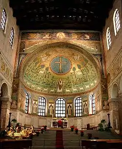 در معماری رومی، معماری روم شرقی و معماری گوتیک دیر مسیحی، کلیسای جامع و معماری کلیسا به صورت دایرهوار در ساختمان اصلی در بالای قربانگاه بدون توجه به شکل سقف قرار میگیرد. ممکن است شکل سقف کلیسا تخت، شیبدار، گنبدی شکل، کروی باشد.
