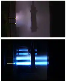پلاسما بدون (بالا) و با (پایین) میدان مغناطیسی