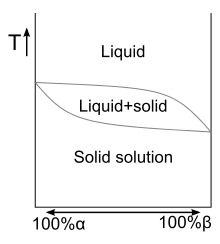 دیاگرام فازی شکل 1 یک آلیاژ متشکل از دو فلز که یک محلول جامد با تمام ترکیب های ممکن ایجاد میکنند را نشان میدهد.