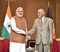 - منعقد کردن موافقتنامه استفاده از بندر چابهار با ایران که امکان تجارت افغانستان با هند را بدون نیازمندی به خاک پاکستان فراهم می کند.[21]