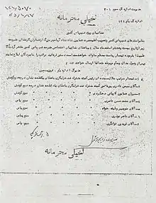 درخواست اعطای نشان افتخار به کارمندان ساواک