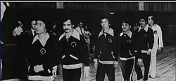 تیم ملی کشتی اندونزی در مراسم افتتاحیهٔ مسابقات قهرمانی جهان مکزیکو سیتی ۱۹۷۸ با سرمربیگری نوایی