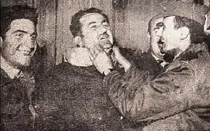 ![]() اعضای گروه بعث در حال جشن گرفتن پیروزی کودتای ۸ مارس، تصویر محمد عمران (وسط) | |