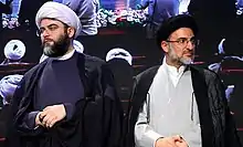 محمد قمی و سید مهدی خاموشی (رئیس سابق سازمان تبلیغات اسلامی) در مراسم تودیع و معارفه