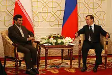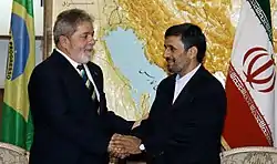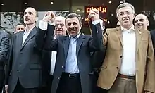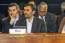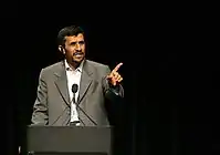 محمود احمدینژاد (زادهٔ ۶ آبان ۱۳۳۵) سیاستمدار ایرانی است که از سال ۱۳۸۴ تا ۱۳۹۲ ششمین رئیسجمهور ایران بود. وی همچنین از سال ۱۳۷۲ تا ۱۳۷۶ اولین استاندار اردبیل و از سال ۱۳۸۲ تا ۱۳۸۴ شهردار تهران بود. او هماکنون عضو مجمع تشخیص مصلحت نظام و دانشیار[13] دانشگاه علم و صنعت ایران است.