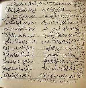 نسخه خطی شعری از استاد که در سال ۱۹۸۴ در مولوز ، فرانسه نوشته شده