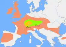 نقشه پراکندگی فرهنگ هالاشتات و محوطه نمونه آن روستای هالاشتات در اتریش.