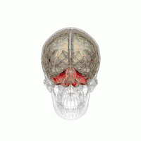 ![]() مخچه به رنگ قرمز نشان داده شدهاست. | |