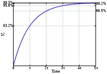 زمان لازم برای آنکه ولتاژ به برسَد، ثابت زمانی آرسی گفته میشود که از بهدست میآید.