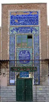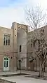 محوطه مدرسه به همراه گلدستههای مقبره یحیی در پشت آن