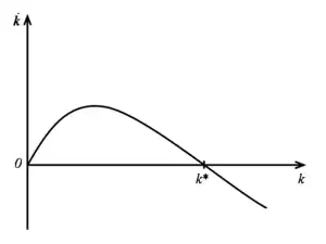 که در آن درصد سهم سرمایهگذاری از تولید یا همان نرخ پسانداز بوده و نرخ استهلاک سرمایه است. فرض میشود که ، و نسبتاً کوچک بوده و مجموع آنها مثبت است.