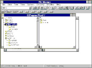 ![]() مدیریت فایل در ویندوز NT 3.5، در حال نمایش فولدرهای موجود در پارتیشن C | |