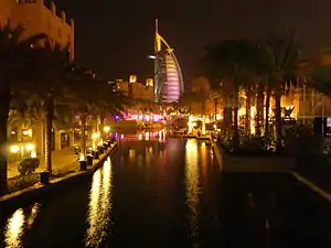 نمایی از مدینه جمیرا. برج العرب در پشت مدینه جمیرا قابل مشاهده است.