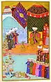 سلطان مراد خان در حال تمرین تیراندازی با کمان (نقاشی مینیاتور، سال 1584)