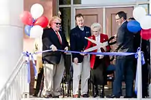 مراسم روبان برش اغلب شامل یک قیچی بزرگ است.