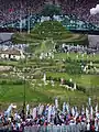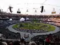 مراسم با نواخته شدن بزرگترین ناقوس اروپا که ۲۳ تن وزن دارد و در ورزشگاه نصب شده بود، آغاز شد. ناقوس را بردلی ویگینس، قهرمان دوچرخه سواری به صدا درآورد.[4]