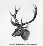 مرال کشمیری![]() | Cervus elaphus hanglu | در معرض خطر (D) | کشمیر |
