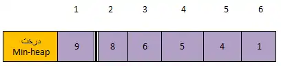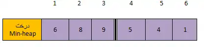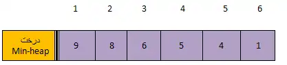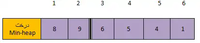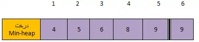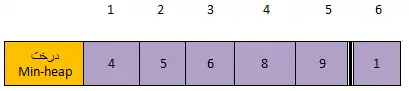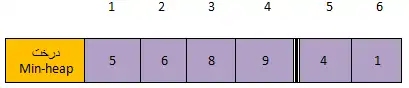 توجه = در حال حاضر درخت از پنج عنصر تشکیل شدهاست و عنصر ششم آرایه از عناصر درخت نیست. به همین ترتیب با حذف مجدد گره ریشه با مقدار ۴ آرایه زیر حاصل میشود: