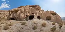 در پای این قلعه دو طبقه اتاقهای صخرهای وجود دارد که بافت و معماری این دخمهها مشابه روستای دستکند میمند میباشد. .