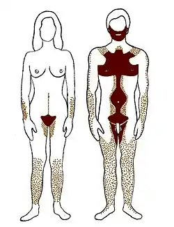 - رویش مو در زیر بغل و دیگر بخشهای بدن