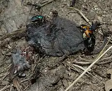رفتار تقریباً مشابهی در میان انسانها نیز دیده میشود که به آن زبالهگردی گفته میشود. زبالهگردی جستوجو در میان پسماندها برای یافتن خوراک یا مواد قابل استفاده است و کسی که از میان پسماندهای جامد مواردی را بهطور غیرقانونی جدا میکند زبالهگرد نامیده میشود.[2]
