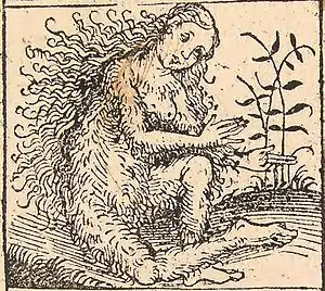 | A woman with hirsutism, as depicted in the Nuremberg Chronicle (۱۴۹۳) | |