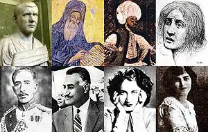 از چپ به راست: ردیف اول:فیلیپ عرب • یوحنای دمشقی • ابویوسف کندی • الخنساء |