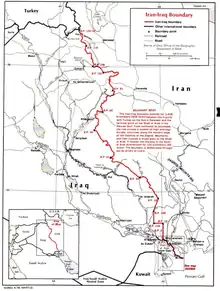 مرز کنونی ایران و عراق بهاستثنای اصلاحی که ضمن عهدنامه مرزی ایران وعراق ۱۳۱۶ بهعملآمده مطابق تحدید حدود ایران و عثمانی است که شرح آن گذشت.[2]