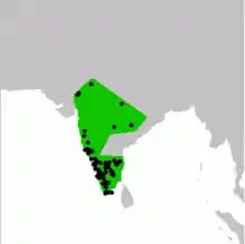 | مکان واقعی زندگی مرغ جنگلی خاکستری و توزیع فرضی آنها | |