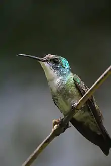 مرغ مگس چانهسفید (نام علمی: Amazilia brevirostris) نام یک گونه از سرده آمازیلیا است. این گونه در شرق ونزوئلا، گویان، ترینیداد و فرا شمال برزیل در منطقه رورایما حضور دارد. این گونه برخی اوقات با مرغ مگس سهرنگه اشتباه گرفته میشود. مرغ مگس چانهسفید حدود ۹ سانتیمتر طول و ۴٫۷ گرم وزن دارد.