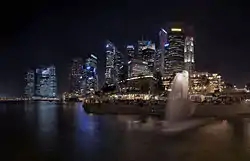مرلاین از پشت دیده شده از سه برج مارینا بی سندز.