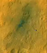 ![]() بالا: مریخنورد کنجکاوی در زمین پایین: فرود به سطح مریخ تصویربرداری توسط دوربین هیریس روی مدارگرد شناسایی مریخ | |