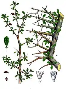 شاخهها، برگ و گلهای درختچه مرّ