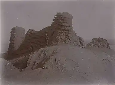 قلعه از سوی شمال غرب به اضافه باستانشناسان محلی. ۱۶ نوامبر ۱۹۱۳.