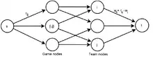 فرض کنید گراف شبکهای با باشد که و به ترتیب مبدأ و مقصد را تعیین میکنند. یک رأس را به طوری که به گراف اضافه میکنیم و آن را با یالی با ظرفیت به وصل میکنیم که تعداد بازیهای بین دو تیم و را نشان میدهد. هم چنین برای هر تیم یک رأس ایجاد میکنیم و هر رأس را به رأسهای و وصل میکنیم تا تضمین کنیم یکی از آنها برنده میشود. برای این یالها ظرفیتی تعیین نمیکنیم. در انتها، وزن یال بین تیم و مقصد را wk+rk–wi قرار میدهیم تا تعداد بردهای تیم i از wk+rk تجاوز نکند. مجموعهٔ تیمهای شرکتکننده در لیگ را مینامیم و . ادعا میکنیم تیم حذف نمیشود اگر و تنها اگر اندازهٔ جریانی با مقدار در شبکهٔ وجود داشته باشد. در مقالهٔ مذکور نشان داده شده که این مقدار همان مقدار بیشینهٔ جریان از به است.