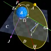 ![]() دو جسم با اختلاف جرم بسیار زیاد که به دور مرکز جرم مشترکشان (که داخل جرم سنگینتر و نزدیک به مرکز آن قرار گرفته) دوران میکنند (مشابه خورشید و زمین) |