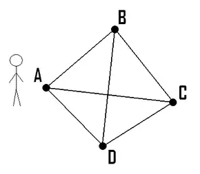 - مسئله معادل در نظریه گراف به این صورت است که یک گراف وزندار کامل داریم که میخواهیم کموزنترین دور همیلتونی را پیدا کنیم.