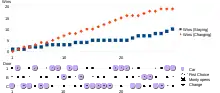 تکرار بازی، استراتژی تغیر کارت را شفاف میکند که چرا استراتژی بهتری است. پس از این که بازیکن کارت را برداشت، این مشخص شدهاست که عوض کردن کارت باعث برد بازیکن در آن دست بازی میشود. اگر این قانعکننده نیست، این شبیهسازی با یک دسته کامل ورق نیز میتواند انجام شود. (گاردنر 1959b;Adams, 1990). در این حالت، کارت مربوط به ماشین ۵۱ بار از ۵۲ بار به میزبان میرسد، و دست مجری باقی میماند بنابراین مهم نیست چه تعداد کارت که منجر به بز میشوند، دور انداخته شوند.