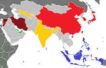 | شرق آسیا (۱+۲+۱) | خلیج فارس (۲+۱) | مرکز آسیا (۲) | جنوب شرق آسیا (۲+۱) | غرب آسیا (۱+۲+۱) |