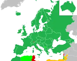 کشورهایی که در یورو ویژن شرکت میکنند همگی باید عضو فعال صدا و سیمای اروپا باشند. ۵۱ کشور تاکنون حداقل ۱ بار در یورو ویژن شرکت کردهاند.