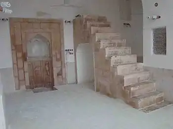 - منبر سنگی با دوازده پله که در کنار محراب قرار دارد، محراب سنگی مقرنس با نقوش هندسی که متأسفانه دستکاری شدهاست.