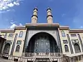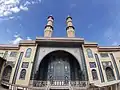 سازه اصلی مسجد فلزی است و از نوع سیستم طاق ضربی ساخته شدهاست. نمای بیرونی آن با سنگ تراورتن سفید پوشیده شدهاست. مسجد از گنبد و منارهٔ قدیمی و دو مناره ساده فلزی طلاییرنگ به ارتفاع تقریبی ۹ متر تشکیل شده که در بالای ساختمان موقوفه مسجد در ضلع جنوبی نصب شدهاست.[4][6]